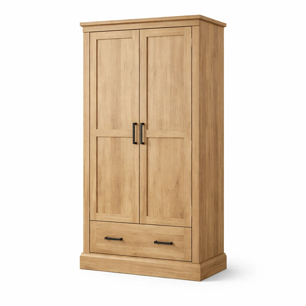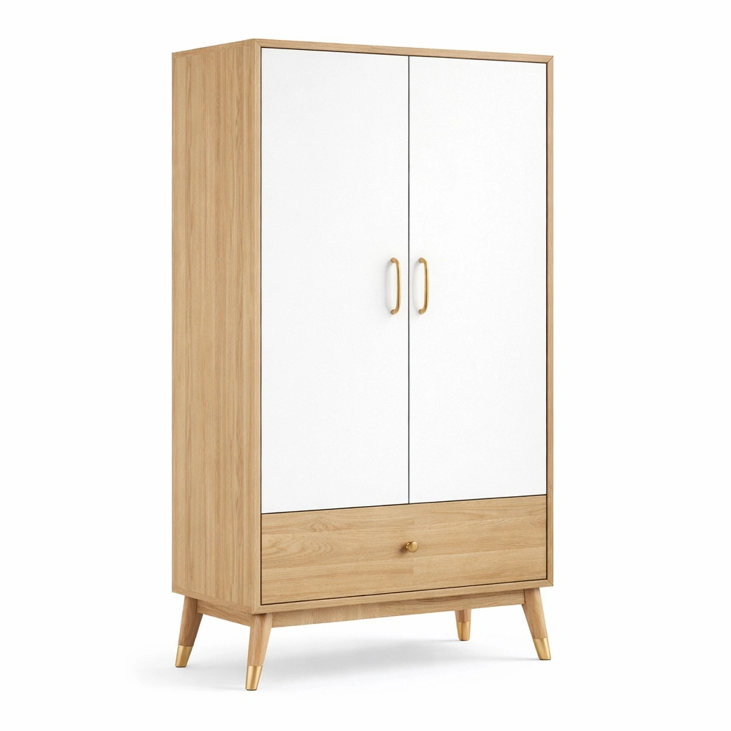 Armario de melamina blanco y roble claro con 2 puertas y 1 cajón